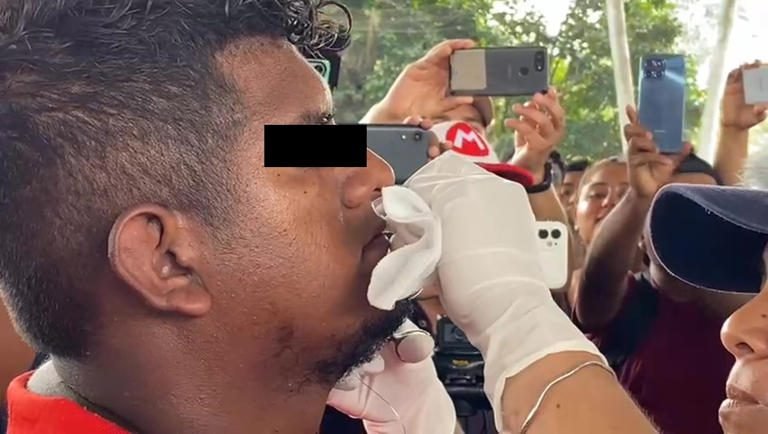 Frente a los migrantes de la caravana, una enfermera de Guatemala y otra mujer que viajan con el grupo se ofrecieron como voluntarias para realizar el procedimiento de la forma más segura e higiénica posible.