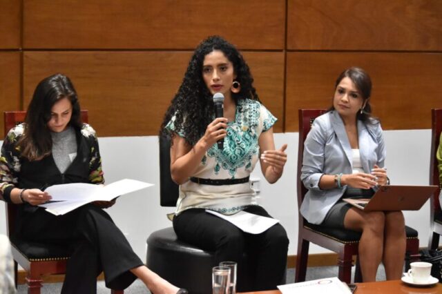 En su participación, Melissa Hernández, activista medioambiental, mencionó que en América Latina se habla de que menos del 30 por ciento de espacios a nivel nacional, subnacional y locales de poder están abarcados por mujeres, pero en negociaciones del medio ambiente se reducen los porcentajes.