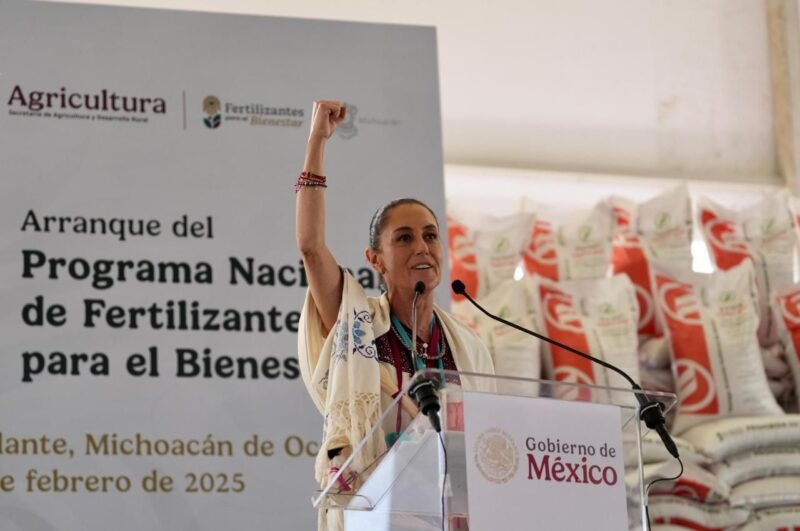 *Salvador Escalante, Michoacán a 08 de febrero de 2025.-* En Salvador Escalante, Michoacán, la Presidenta de México, Claudia Sheinbaum Pardo, encabezó la entrega del *Programa Nacional de Fertilizantes para el Bienestar*, un derecho constitucional que beneficiará con de 40 mil 435 toneladas a 74 mil 252 productores y productoras del campo de 113 municipios de dicho estado para la siembra de 135 mil hectáreas (ha).
