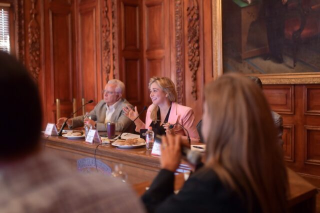 Durante el encuentro, la mandataria estatal estuvo acompañada por María Angélica Granados, secretaria de Innovación y Desarrollo Económico, así como por Fernando Álvarez Monge, secretario particular del Despacho.