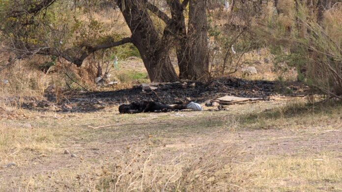 Chihuahua, CHIH. La mañana de este martes fue reportado a los números de emergencia el hallazgo de un cuerpo maniatado y totalmente calcinado en el cruce de las calles Mina La Negrita y Mina La Soledad, en la colonia Robinson al sur de esta capital.
