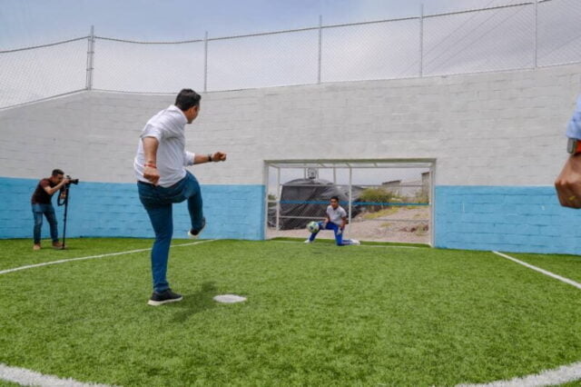 En el caso de la cancha de futbol con pasto sintético, se invirtió 1 millón 269 mil 280 pesos para beneficiar a 949 personas que forman parte de esta comunidad estudiantil.