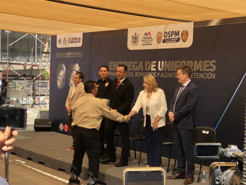 El presidente municipal, Marco Bonilla, encabezó la entrega de mil 388 uniformes completos para policías, 212 para bomberos y 62 para agentes de detención.