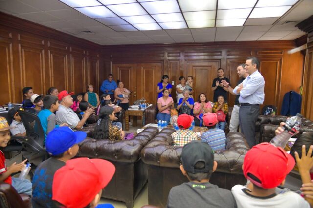 El alcalde explicó a los jugadores y sus padres que los acompañaron, que la apuesta con su homólogo de Parral consistía en entregar uniformes completos al equipo de la ciudad ganadora del partido de beisbol entre Dorados de Chihuahua vs Mineros de Parral, sin embargo, al darle la vuelta el equipo visitante, comprometió a Anwar Elías a apadrinar a los niños que asisten a la escuela de beisbol de Ejido Ocampo.