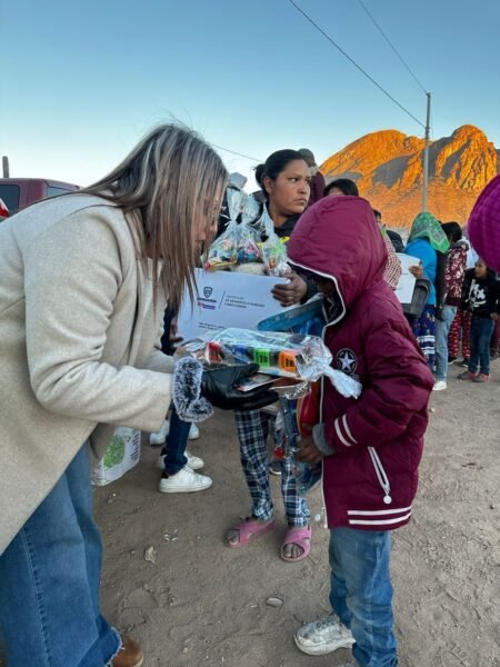 Chihuahua, Chih.- En el marco de las festividades navideñas, el personal de la Subsecretaría de Seguridad Ejecutiva, perteneciente a la Secretaría de Seguridad Pública del Estado (SSPE), entregaron diversos apoyos en la colonia Las Norias y sus alrededores, así como en el asentamiento Tarahumara Sur de la Ciudad de Chihuahua.