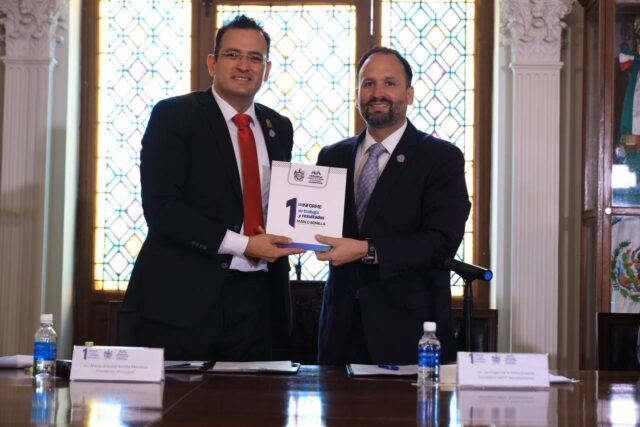 El alcalde Marco Bonilla realizó oficialmente la entrega de su primer informe de Gobierno ante el Ayuntamiento de la capital, en presencia de todos los regidores que conforman al H. Cabildo.