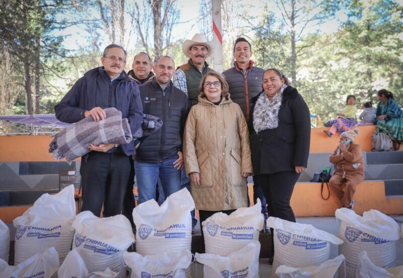 En Urique se distribuyeron 102 toneladas de maíz y frijol, además de 1,200 cobijas y 100 chamarras para niñas, niños y adolescentes; en Guadalupe y Calvo fueron 240 toneladas de alimento, así como 1,500 cobijas y chamarras para familias de 13 comunidades de la región.