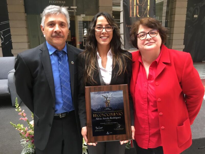 Chihuahua, Chih.- Silvia Ivonne Arzola Rodríguez, estudiante de Doctorado de la Facultad de Ciencias Químicas de la Universidad Autónoma de Chihuahua, obtiene reconocimiento del Premio Chihuahua Vanguardia en Artes y Ciencias 2023 con su proyecto Granada vs. cáncer de mama.