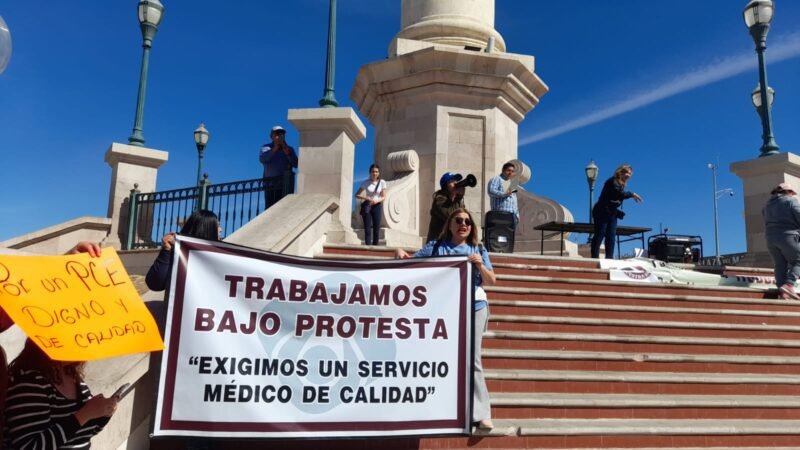 «Trabajamos bajo protesta. Exigimos un servicio médico de calidad», se leía en una de las pancartas que llevaban consigo. En voz de sus compañeros, el catedrático hizo énfasis en que la protesta no obedece razones políticas, ni intereses partidistas, luego de que fueran señalados de esto por detractores de su lucha.