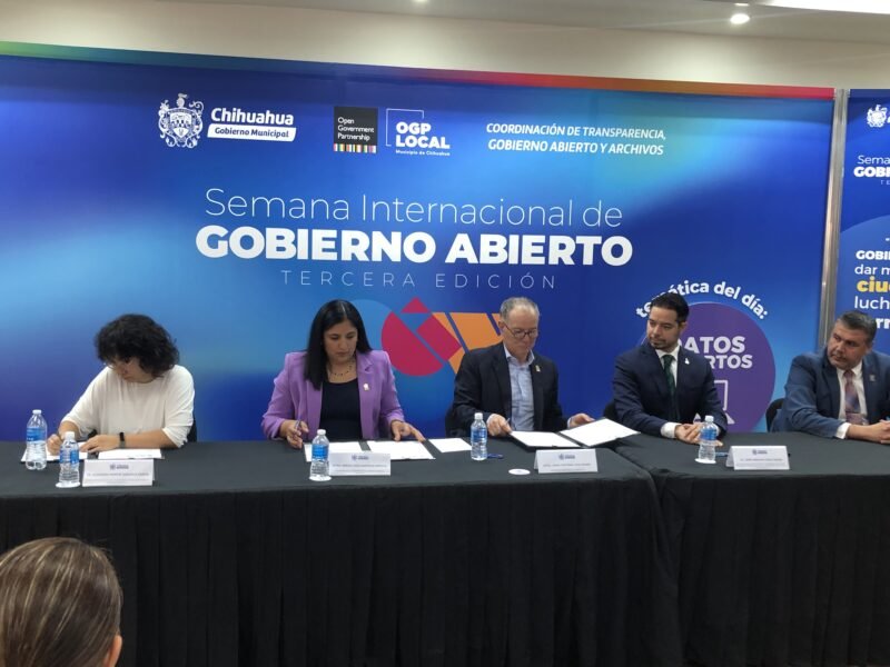 Dentro de Semana Internacional de Gobierno Abierto 2024, la cual es su tercera Edición, se firmó un convenio entre CODEANDO México A.C. y el Gobierno Municipal, así como la presentación de la Política de Datos Abiertos del Gobierno Municipal de Chihuahua.