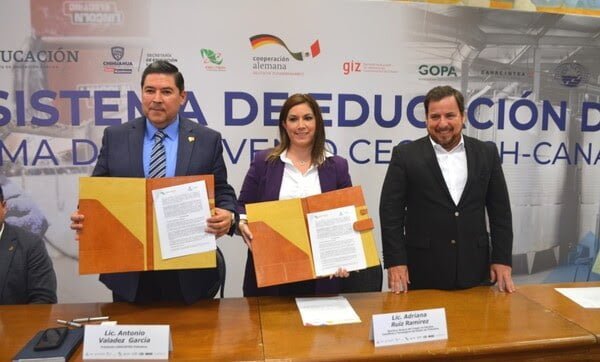 La directora general de CECyTECH informó que como parte de este convenio, 25 estudiantes del CECyT No.24 Toribio Ortega, ubicado en la ciudad de Chihuahua, se incorporarán al Sistema de Educación Dual en tres empresas afiliadas a CANACINTRA, a las cuales agradeció que brinden espacios para el alumnado de este subsistema.