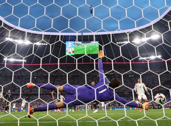 Alemania tejió su jugada poco a poco hasta llegar a la banda derecha en la que se encontraba Joshua Kimmich, el lateral alemán recortó hacia el centro de la cancha y cedió para Florian Wirtz, quien no se lo pensó dos veces y -de primera intención- mandó al fondo de las redes su intento (10’).