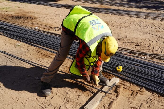 En el lugar, personal especializado trabaja en distintas etapas del proceso constructivo, como la colocación de acero, cimbrado y colado, actividades fundamentales para consolidar la estructura y asegurar su funcionamiento en óptimas condiciones.
