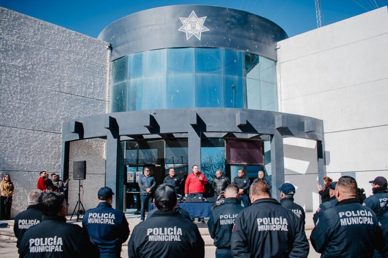 El presidente municipal Jorge Aldana destacó el fortalecimiento de la corporación de Seguridad Pública Municipal gracias al respaldo del Gobierno del Estado, encabezado por la gobernadora Maru Campos, y al secretario de Seguridad Pública, Gilberto Loya.