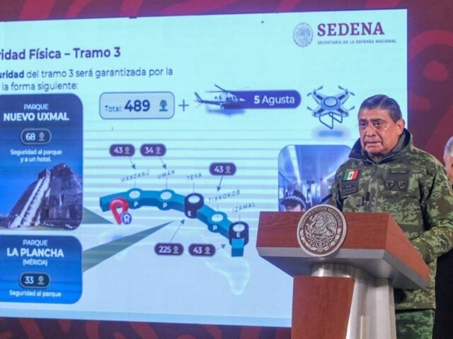 El titular del ejército mexicano, señaló que dicha vigilancia estará a cargo de la Guardia Nacional, y que se estarán desplegando un total de 489 elementos en el tramo 3 del tren, el cual va desde Calkiní, Campeche, a Izamal, Yucatán.