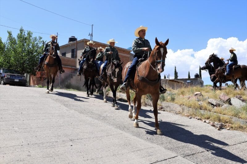 La Policía Montada está integrada por 11 elementos a cargo del policía tercero, Raúl Jáquez Frías, con 20 equinos de Santa Gertrudis y de crianza criolla a su cargo, que diariamente realizan recorridos en comunidades alejadas como Majalca, los diferentes ejidos del territorio municipal, las huertas nogaleras y colonias periféricas de la mancha urbana.