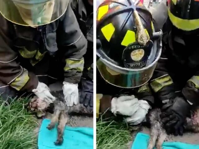 En un video difundido en la cuenta oficial de Twitter de los Bomberos de la Ciudad de México se muestra como dos bomberos aplican los primeros auxilios al ‘lomito’