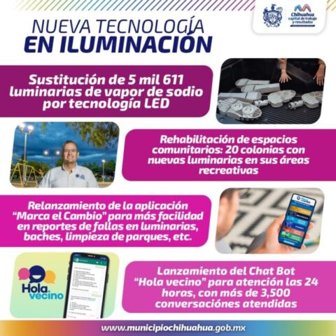 Iniciamos el reemplazo del alumbrado público con tecnología LED, tan solo de septiembre de 2021 a agosto de 2022 realizamos la sustitución de 5 mil 611 luminarias de vapor de sodio por tecnología led en 32 vialidades, mediante proyecto de infraestructura de iluminación que busca proveer de tecnología led a toda nuestra ciudad, en beneficio de las mujeres trabajadoras que a temprana hora o muy noche salen a trabajar, para los peatones y los conductores que circulan por estas rúas.
