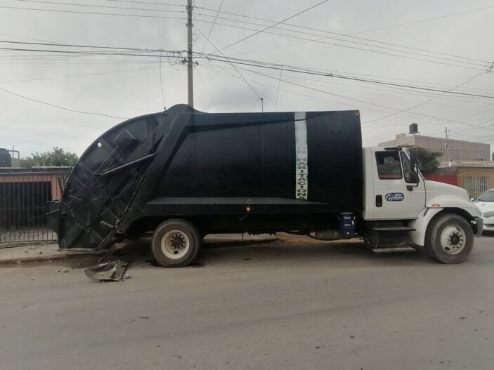 Un camión de recolección de basura que realizaba recorrido en la colonia Revolución en el cuadrante de las calles Pascual Orozco, Vicente Güereca, Insurgentes y 17 de Junio, tuvo un accidente dejando daños materiales.