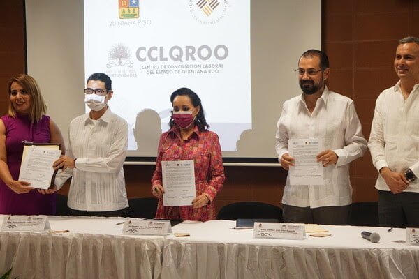 El Secretario del Trabajo destacó que, como parte de la gira del trabajo, el Gobierno del Estado de Chihuahua firmó dos convenios de colaboración con los Centros de Conciliación Laboral de los estados de Tabasco y Quintana Roo, entidades donde ya se encuentra vigente y operando la Reforma Laboral, al formar parte de la primera y segunda etapa respectivamente.
