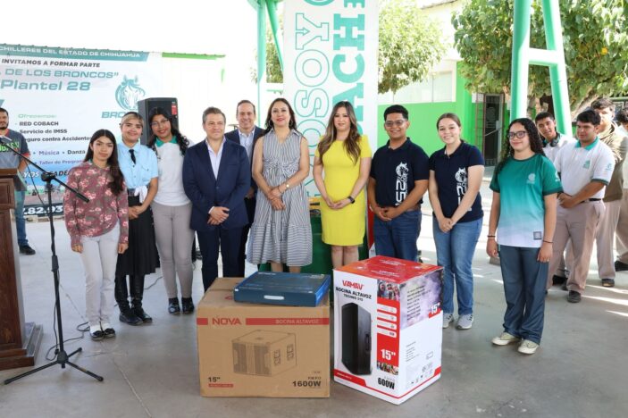 El Colegio de Bachilleres del Estado de Chihuahua (Cobach), inauguró obras de infraestructura y entregó equipamiento a diversos planteles en el municipio de Meoqui, en beneficio de 510 estudiantes de la región.