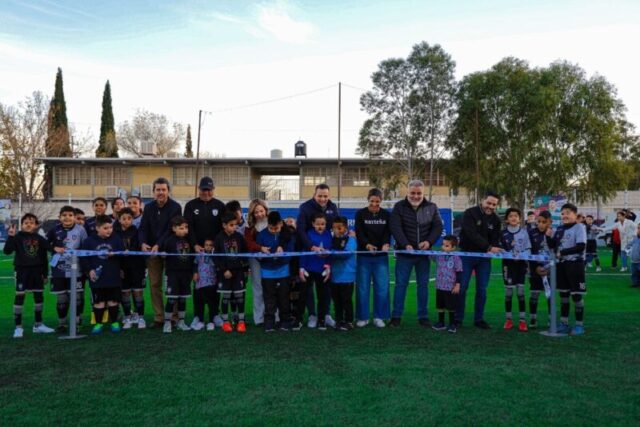 Al término de la entrega formal de la obra, se realizó el tradicional corte de listón, la patada inicial y se enfrentaron los funcionarios municipales contra un equipo local como parte de la celebración por esta rehabilitación.