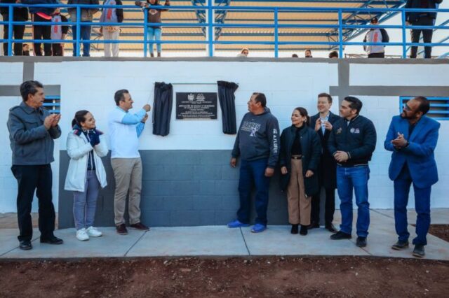 El alcalde de Chihuahua capital, Marco Bonilla, inauguró la rehabilitación de las gradas y techumbre de una cancha de softbol ubicada en el Parque Fundadores, también conocido como Huerta Legarreta, al norte de la ciudad, obra que fue promovida por las y los vecinos de la zona a través del Presupuesto Participativo en su edición 2022.