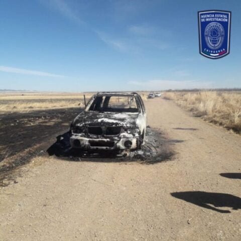 Una vez constituidos en el lugar, los agentes tuvieron a la vista, sobre la carretera, un vehículo calcinado; en el interior se localizaron los cuerpos de dos personas, ambas incineradas, mientras a que, a un costado automotor, se encontró una tercera persona sin vida, la cual presentaba diversas heridas causadas al parecer por proyectil de arma de fuego.