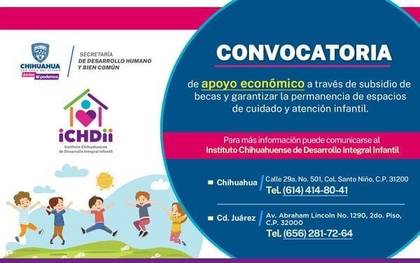 Chihuahua, Chih.- Con la finalidad de beneficiar a madres y padres de familia en el tema de estancias infantiles, la Secretaría de Desarrollo Humano y Bien Común a través del Instituto Chihuahuense de Desarrollo Integral Infantil (ICHDII), invita a los centros de atención infantil a participar en la convocatoria para recibir apoyos económicos mediante de subsidio de becas.