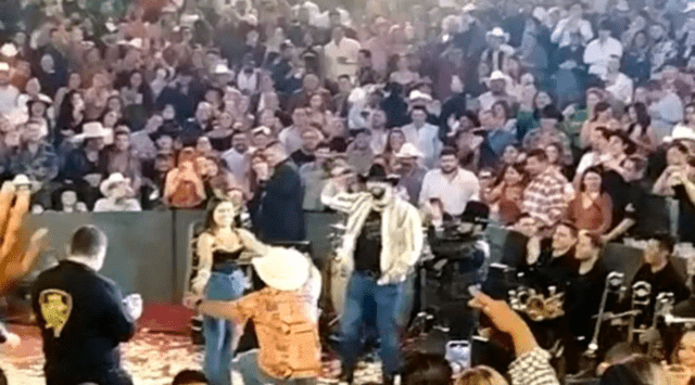 Fue pasadas las 3 de la mañana cuando el cantante de regional mexicano invitó a una joven a pasar al centro del escenario, ahí, ella fue sorprendida cuando su pareja entró también y frente a todos se hincó y le propuso matrimonio: «Mi amor te quieres casar conmigo», dijo el enamorado ante un llenó total del palenque potosino.