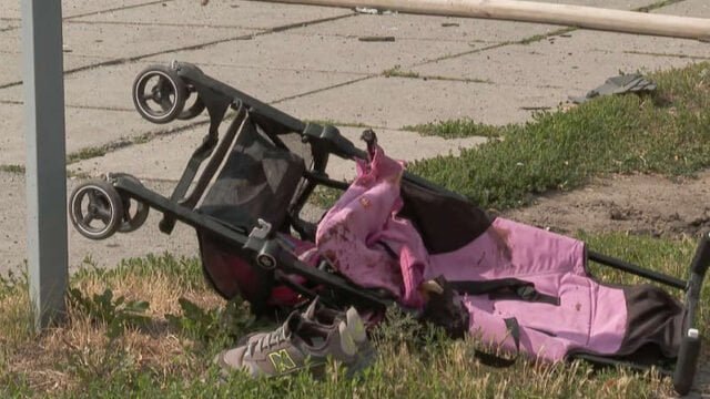 La imagen del cochecito de bebé de Lisa, abandonado en una calle y ensangrentado, circula por internet tras el ataque producido el jueves, que el presidente ucraniano, Volodymyr Zelensky, ha calificado de «acto terrorista».