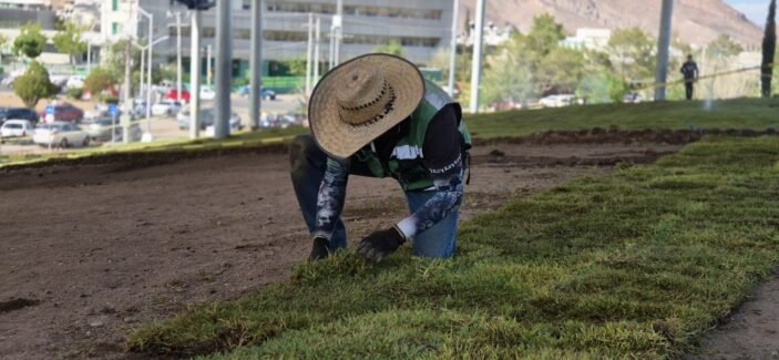 Hace unos días, la Dirección de Mantenimiento Urbano, colocó pasto nuevo debajo de la techumbre que da sombra en el parque El Palomar en donde se instalaron mil 300 metros cuadrados de pasto en rollo tipo Kikuyo, mejorando así uno de los espacios más emblemáticos y concurridos por las familias chihuahuenses.