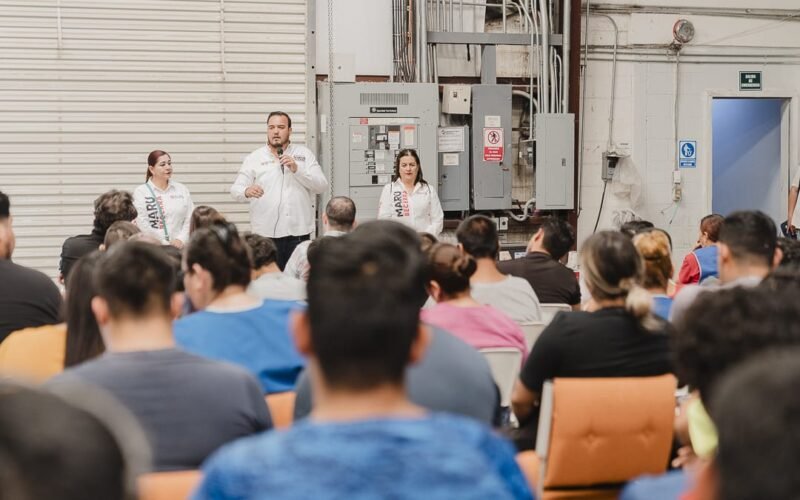 Jorge Aldana, candidato a la presidencia municipal de Camargo por la coalición «Juntos Defendamos Chihuahua» integrada por el PAN, PRI y PRD visitó dos maquiladoras del municipio teniendo un gran recibimiento por parte de los trabajadores.