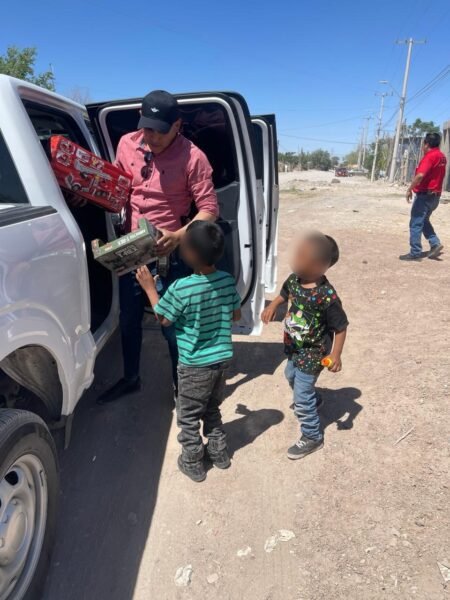 Ciudad Juárez, Chih.- En una noble actividad realizada por elementos de la Agencia Estatal de Investigación, adscritos a la guardia y custodia del Fiscal de Distrito Zona Norte, regalaron juguetes a niños y niñas que viven en colonias periféricas, en Ciudad Juárez.