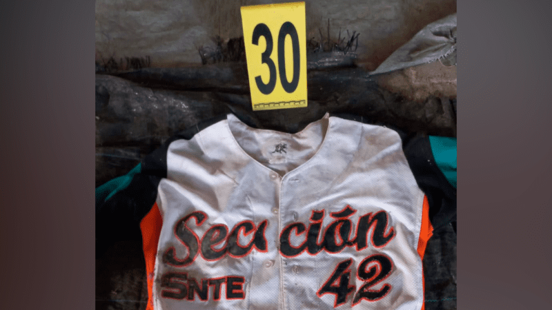 Entre los 493 indicios del catálogo, que el activista Ángel Abundis convirtió en una página web (https://rancho-izaguirre.abundis.com.mx/) aparece una jersey de béisbol de colores blanco, naranja, verde y negro, en cuya parte frontal se inscribe una leyenda de la Sección 42 del Sindicato Nacional de Trabajadores del Estado (SNTE), ubicado en Chihuahua.