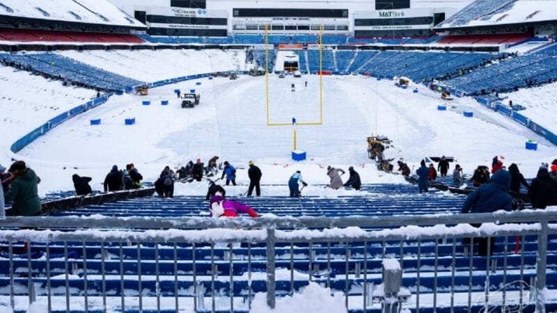 El viernes ya estaban llegando al estadio quitanieves y retroexcavadoras, con un camión volcador esparciendo sal en los estacionamientos y las carreteras en previsión de la tormenta. Los Bills hicieron un llamamiento a los voluntarios para que se inscribieran como posibles paleadores de nieve, sin ninguna indicación de si serán necesarios o cuándo.