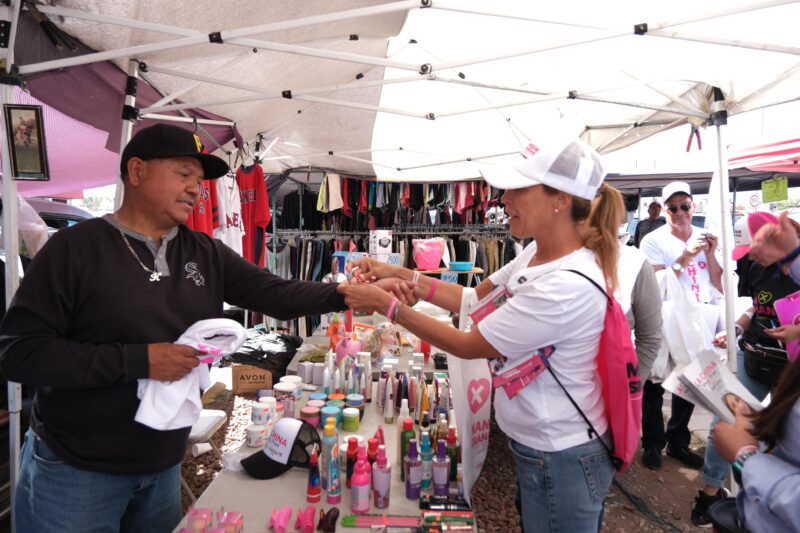 Manque Granados, junto a Nancy La China Frías, candidatas a diputadas por el sexto Distrito Federal y 12 local, respectivamente, saludaron a vecinos y vendedores del tianguis de la Tarahumara, escuchando sus inquietudes e invitándolos a sumarse al proyecto de Fuerza y Corazón por México.