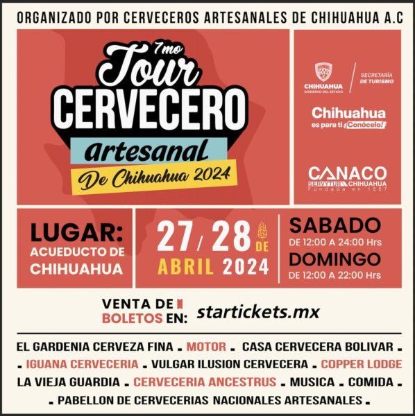 La Asociación de Cerveceros Artesanales de Chihuahua invitó a la comunidad a la séptima edición del festival “Tour Cervecero 2024” a realizarse el 27 y 28 de abril en el Parque El Acueducto.