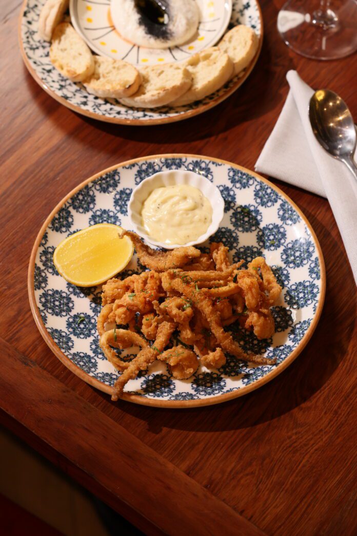 Un guiño a la cocina costera italiana, con una fritura ligera que privilegia la textura y frescura del producto, acompañada de elementos que realzan su carácter mediterráneo.