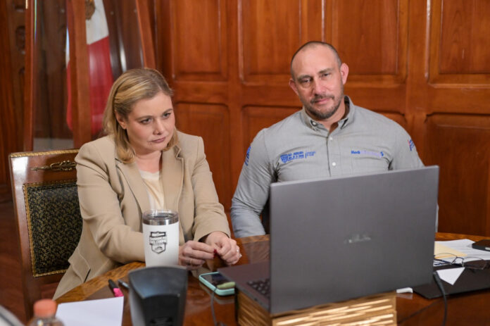 Al igual que en sesiones anteriores, la titular del Ejecutivo chihuahuense estuvo acompañada por el secretario de Salud, Gilberto Baeza, durante el encuentro en el que participaron además las y los mandatarios estatales de las diferentes entidades federativas.