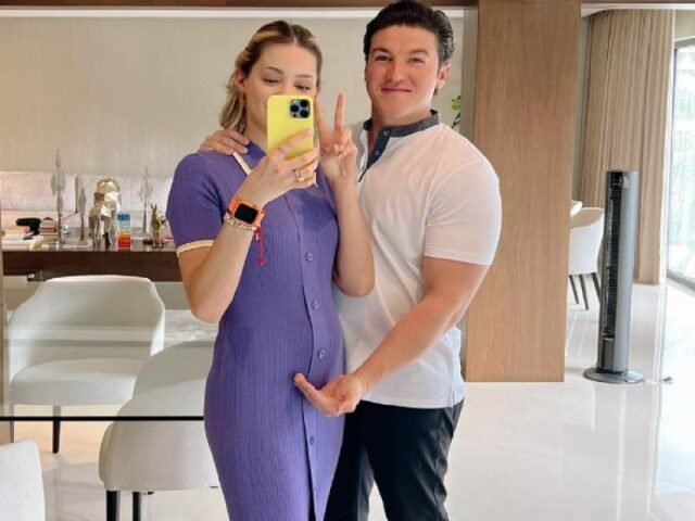 En otra foto, ella y el mandatario estatal resaltan el crecimiento del bebé que sobresale por la figura del vestido morado que usa la primera dama de Nuevo León.