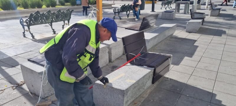 Han recolectado cien bolsas y 300 metros cúbicos de desperdicios, limpiado 14 mil metros cuadrados de superficies con manchas de aceite y otras sustancias, limpiado las áreas verdes, las bancas, el kiosko y la placa frente a la Presidencia Municipal y vaciaron ochenta botes de basura que rebasaban su máxima capacidad.