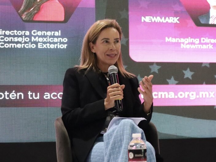 En un diálogo con Carlos Sánchez, director general de Newmark; Susana Duque, directora general del Consejo Mexicano de Comercio Exterior (COMCE); e Itziar Gómez de Plasmar, Granados expresó que los compromisos del T-MEC no pueden sostenerse con una política improvisada ni centralista: