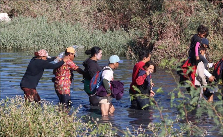 Cómo podían, los migrantes cruzaron el río y lograron tocar el piso del territorio americano.