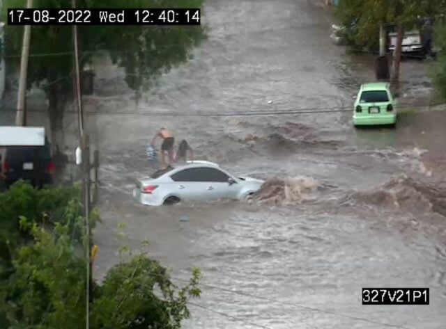 Se auxilia a varios automovilistas varados en medio de la corriente, en la Tecnológico y Sicomoro.