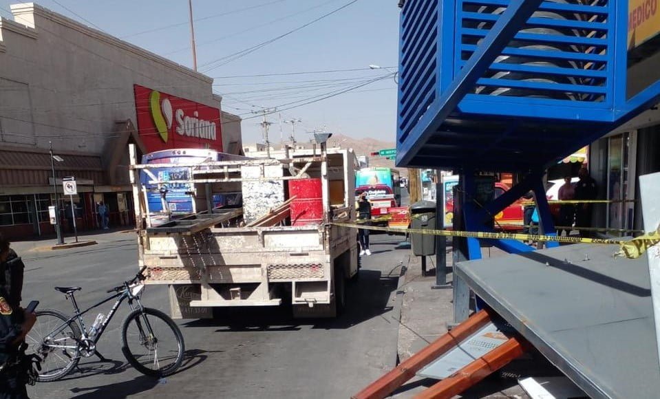 – Apoyo en retiro de la estructura de parabus derrumbada en la  Niños Héroes y Segunda.