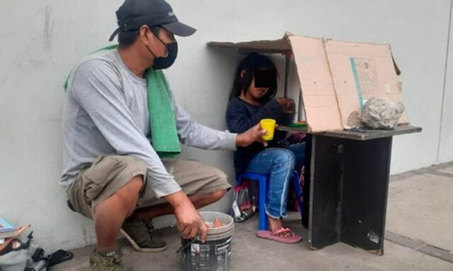 Por ello, su papá adaptó una caja de cartón con una mesita y una silla para la pequeña, lo hizo para que la menor no se asoleara, mientras el laboraba en la avenida América Oeste, en las inmediaciones del Óvalo Papal de Trujillo.