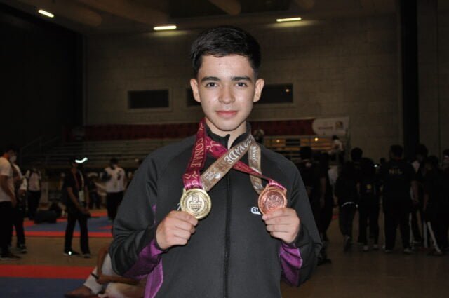 Chihuahua, Chih.- Yehsoua Danhayel Reza Flores obtuvo la medalla de oro en kumite (combate) y bronce en kata de la Categoría Juvenil Menor al dar inicio la competencia de Karate en los Juegos Nacionales Conade 2022, que se realizan en La Paz, Baja California Sur.