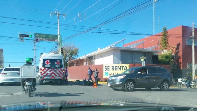 En la avenida Mirador en el cruce con la calle Lisboa, un automóvil marca Sentra embistió a un motociclista y lo lanzó varios metros hacia el frente, pero al momento no se reportó que el afectado tenga heridas de gravedad.
