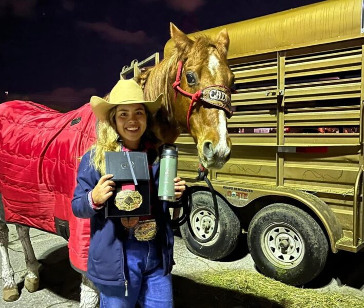 La joven jinete originaria de Cuauhtémoc, subcampeona nacional NBHA México 2022, campeona de finales nacionales FMR Tour 2023 y campeona nacional FMR 2023 estará participando en la carrera de barriles en dicho evento internacional representando a nuestro país.